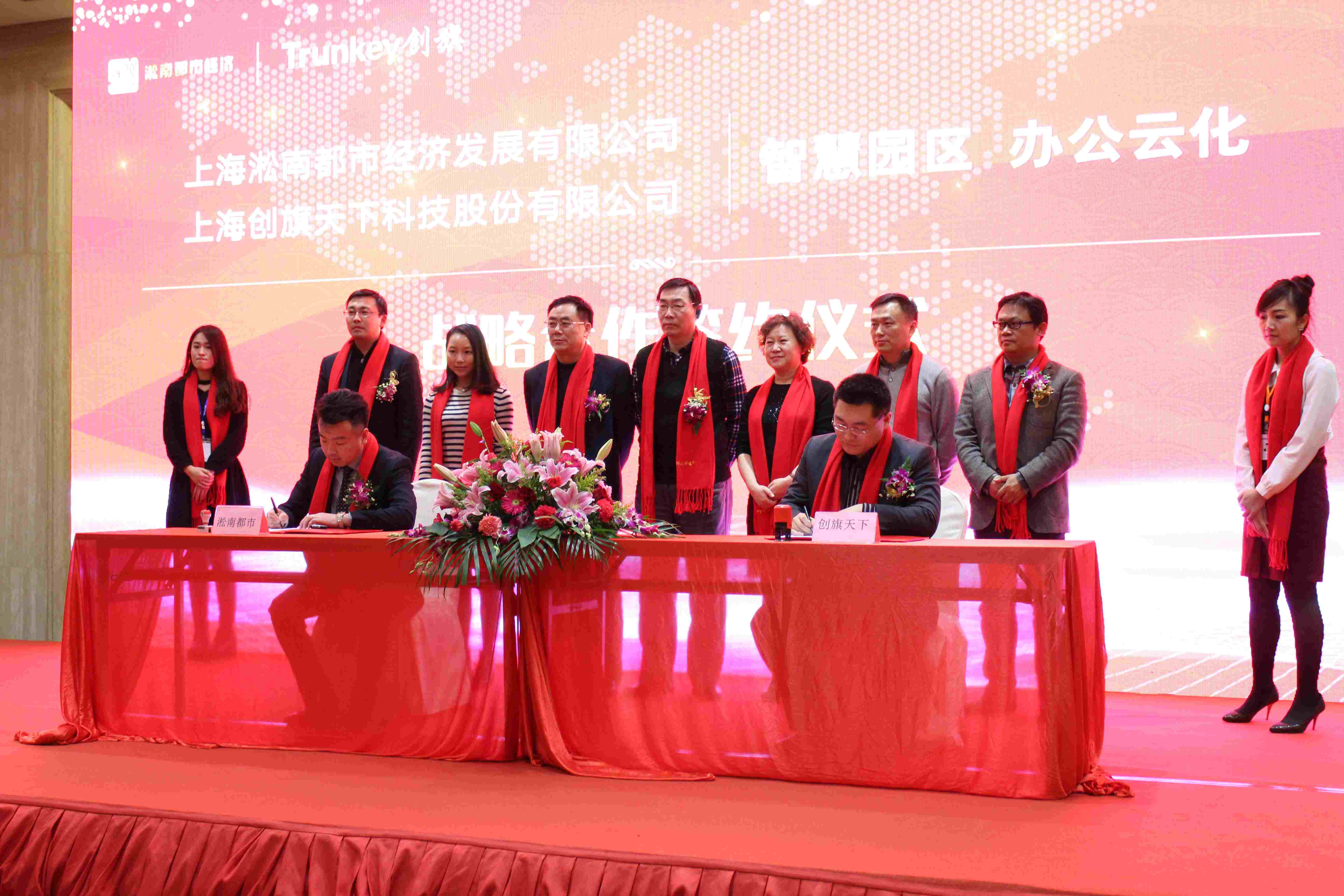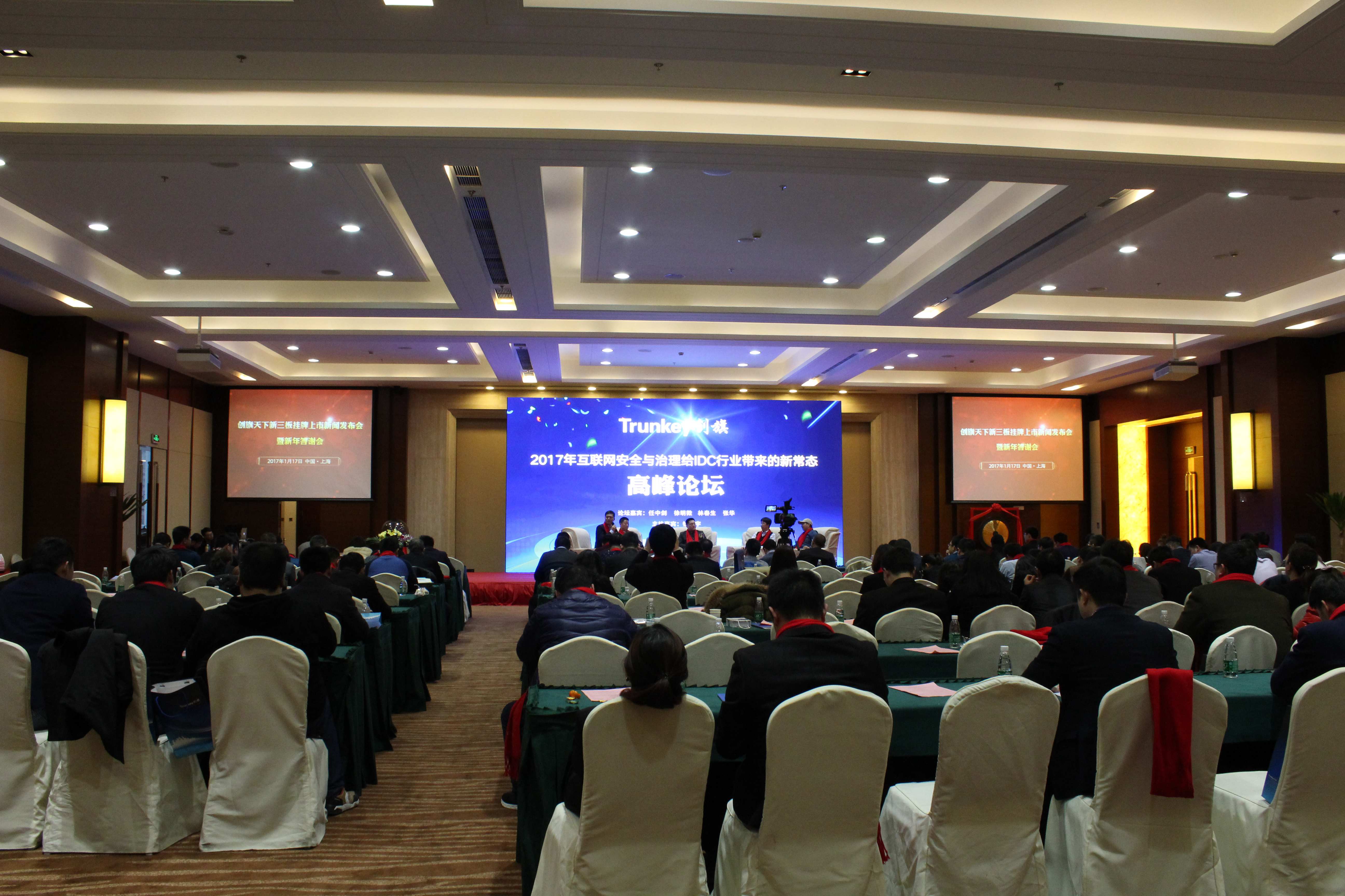 2017年1月17日下午,创旗天下新三板挂牌上市新闻发布会暨新年答谢会在上海移动互联网创业园隆重举行。参会嘉宾有上海宝山区淞南镇镇长徐洪发,副镇长张鹏,阎志军,宝山区科委黄铁红,宝山区经信委主任叶英等领导和创旗天下密切合作多年的企业客户以及创旗所有员工。