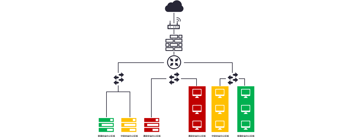 首先采用物理隔离,与普通和中级办公环境和外网实现物理隔离。另外,只允许上内网,USB接口全部禁用,云主机设置访问密码,终端全部设定锁定密码,如需进一步加强安全,可以配置不同云网络和安全组实现进一步的隔离。